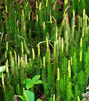 The fine spores come from the lycopodium clubmoss.