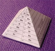 Pyramid Table.It may seem that cutting out a table and gluing together a pyramid is a pretty elementary assignment, but this is a very clever 3-D periodic table. The extra dimension dramatically shows the energy levels and subshells. This novel arrangement clearly shows the s, p, d & f subshell blocks on the periodic table and makes a pretty desktop decoration. Look it over carefully after constructing it.